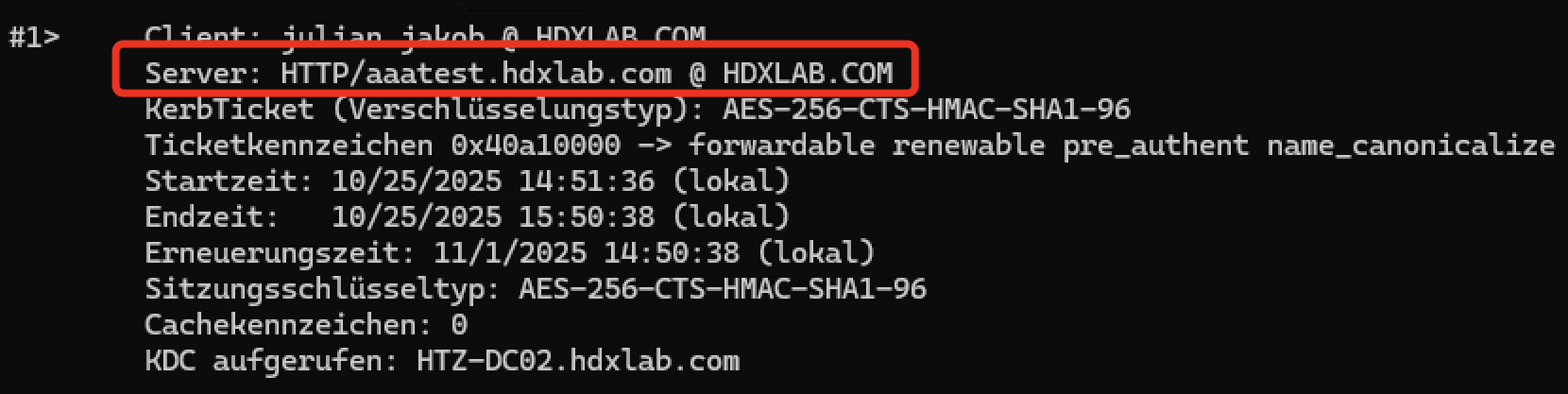 We’ve checked the Kerberos Tickets on the Client with “klist” and there’s a correct looking Ticket for the http/aaa.customer.com URL. I reproduced the issue in my LAB: