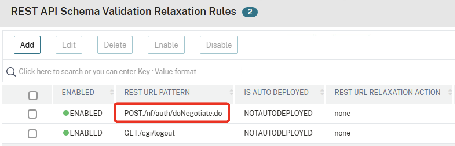 bind appfw profile ns-aaa-default-appfw-profile -restValidation "POST:/nf/auth/doNegotiate.do"