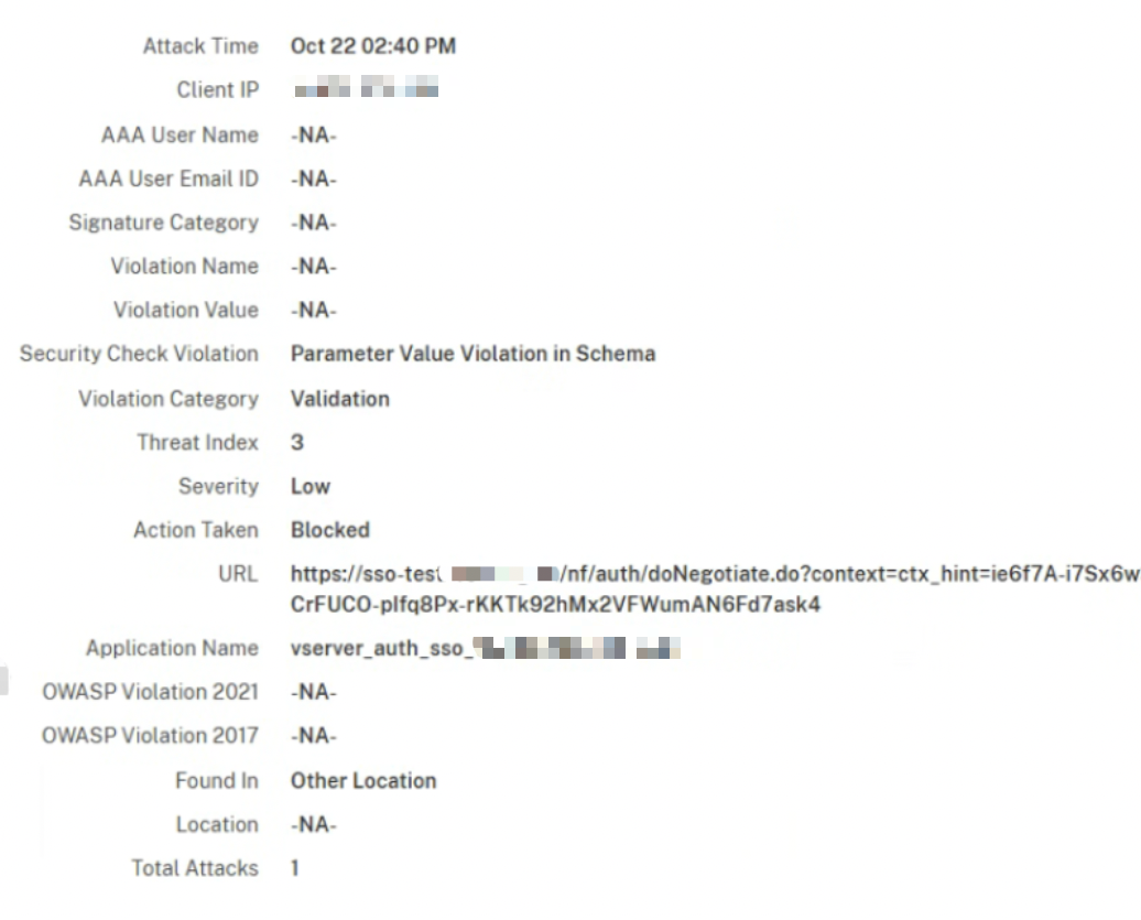 ns-aaa-default-appfw-profile Parameter value incorrect as per API Spec: (ns-aaa-spec) for Endpoint: (POST https://aaa.customer.com/nf/auth/doNegotiate.do?context=XXXXX) <blocked>